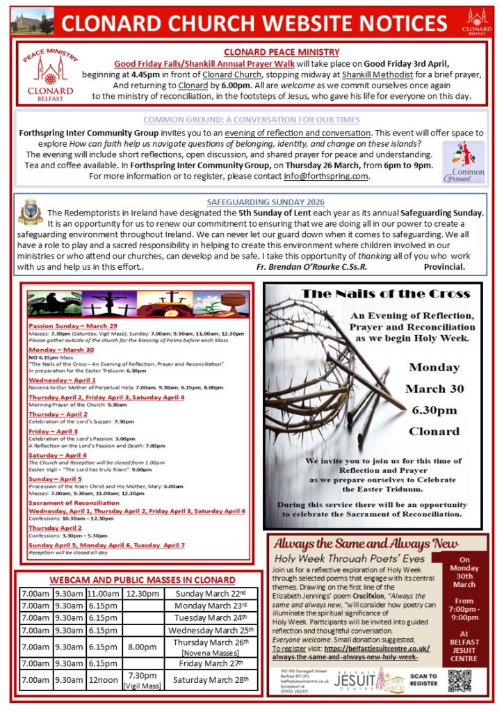 Welcome to the website of the Redemptorists at Clonard, Belfast